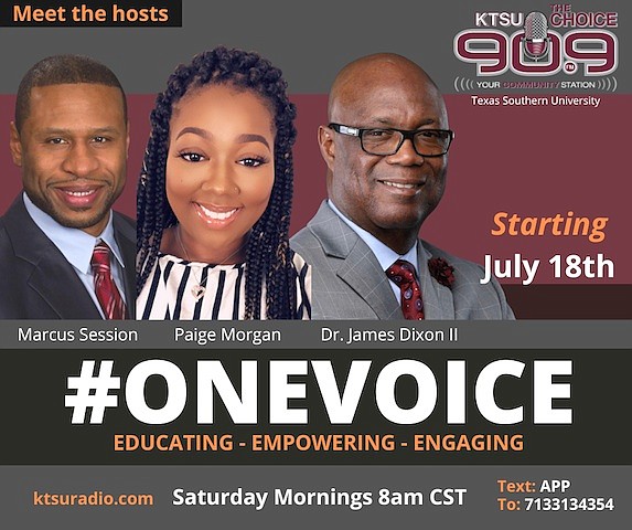 With the recent racial unrest in our country, now more than ever before, our voices are needed to highlight the social ills plaguing the Black community. That’s why Texas Southern University’s community radio station KTSU, The Choice 90.9 is proud to debut #ONEVOICE, a new talk radio show that is designed to educate, empower and engage the Black community and its allies.