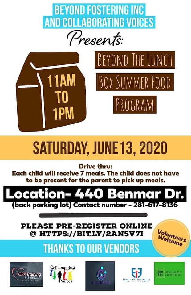 Beyond Fostering, Inc. of North Houston-Greenspoint kicked off their 2nd Anniversary Car Parade and Beyond The Lunch Box Summer Food Program in partnership with Collaborative Voices and The Houston Food Bank.