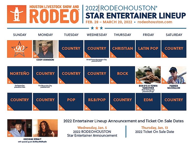 2022 RodeoHouston® Star Entertainer Genre Calendar