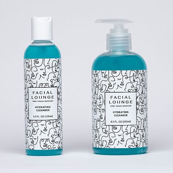 We’re so excited to announce the newest edition to the Facial Lounge family, our vegan Hydrating Cleanser, aka the “Blue Wash”. Naturally blue, soap-free gel cleanser that keeps skin hydrated while removing makeup. Not only does it act as a cleanser but it’s great for shaving too. So yes, you and the hubs and bf’s can share.