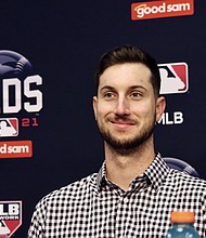 Tucker celebrates with teammate Carlos Correa in Game 2 of the ALDS Published on October 10, 2021 |