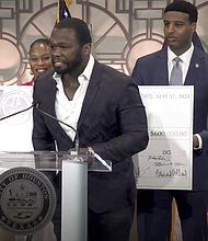 Harris County Commissioner Rodney Ellis, left, and Arthur L. Schechter, former U.S. Ambassador to the Commonwealth of The Bahamas, talk on side of the Gov. … Published on September 27, 2021 |