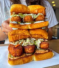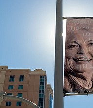 Harris County Commissioner Rodney Ellis, left, Mayor Sylvester Turner and Margaret Justus, founder of the Ann Richards Legacy Project, walk alongside Precinct One’s bus honoring … Published on September 27, 2021 |