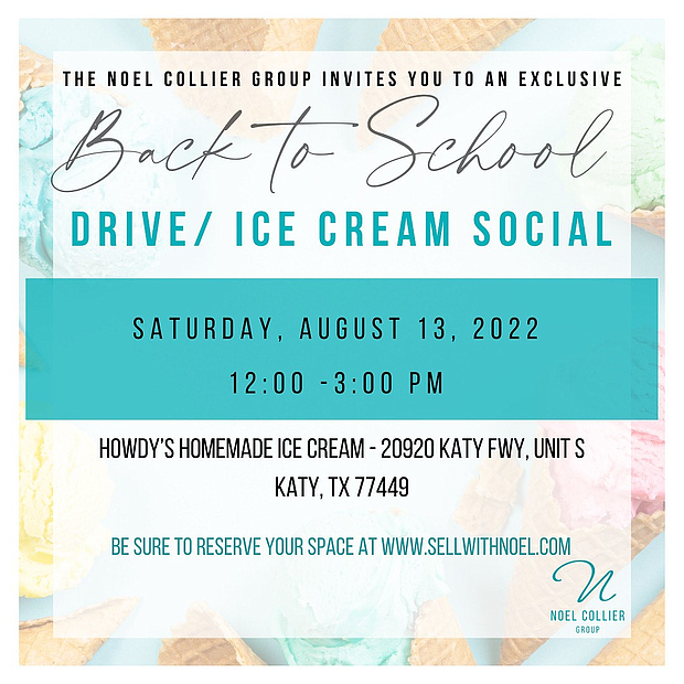The Noel Collier Group, a leading Black woman-owned Houston real estate agency, has partnered with Howdy Homemade Ice Cream for an Exclusive Ice Cream Social and Back-to-School Drive this Saturday, August 13, 2022, from Noon-3pm, at Howdy’s, (20920 Katy Fwy Ste S) in Katy, Texas!