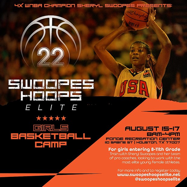 4X WNBA Champion, 3X Olympic Gold Medalist, Hall of famer and legend Sheryl Swoopes hosts her first all-girls elite basketball camp, Swoopes Hoops Elite Basketball camp. Swoopes is hosting the Free camp at the Houston Texans YMCA | 5202 Griggs, Houston, TX 77021, August 15th – 17th from 8 AM to 4 PM daily. Swoopes put an all-star coaching team together to execute the best skills for some of the best talent. Swoopes and team received over 50 registrations from all over the country. Only 30 girls could be chosen to attend the camp. The girls range from 8th to 11th grade.