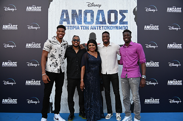Stills from the Greece Premiere of the Disney+ Original Movie “Rise,” which is streaming exclusively on Disney+, are now available. Among those who attended the outdoor event held last night at the Sepolia Basketball Court in Athens were the film’s subjects, executive producer Giannis Antetokounmpo and his mother, Veronica “Vera” Antetokounmpo, and his brothers Thanasis Antetokounmpo and Alex Antetokounmpo, along with “Rise” cast members Uche Agada (Giannis) and Ral Agada (Thanasis), and producer Bernie Goldmann. The event featured a pre-screening musical performance by Ofili Antentokounmpo, who co-wrote two songs for the film.
