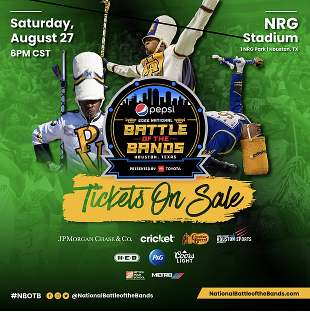 Earlier today event organizers for the Pepsi National Battle of the Bands presented by Toyota announced that this year’s event will take place on Saturday, August 27 at NRG Stadium and will kick off at 6:00 p.m. CST. This announcement also revealed the highly anticipated marching band lineup and marks the beginning of the event’s discounted ticket pre-sale window.