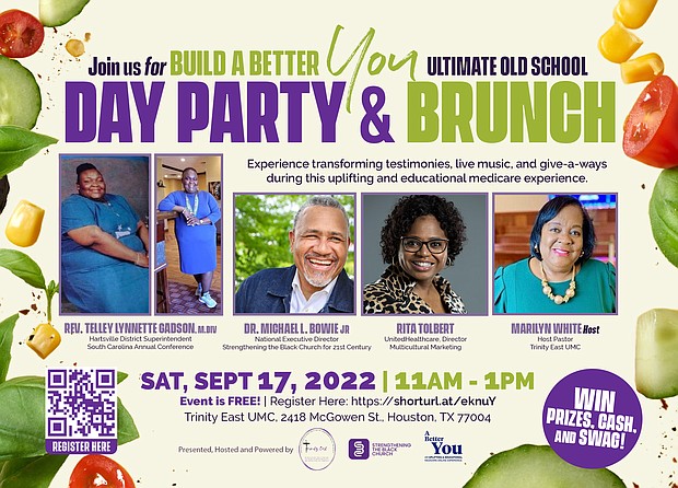 Brunching with a Purpose is taking on a new meaning as the United Methodist Strengthening the Black Church for the 21st Century (SBC21) announce a Health, Wellness and Medicare Education Tour designed to inspire community members to BUILD A BETTER YOU! The tour will make a stop in Houston at Trinity East Church in 3rd Ward, 2418 McGowen Street, Saturday, September 17 from 11 am-1pm.