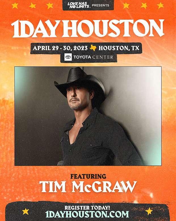 Love Has No Limits (LHNL), a nonprofit working to address some of the nation’s most pressing challenges by harnessing the power of collaboration, announces award-winning country singer Tim McGraw as a headliner for 1DayHouston’s exclusive concert experience Sunday, April 30. McGraw will be celebrating the hard work of thousands of volunteers at Houston’s largest single-day giveback event, 1DayHouston. The first 32,000 registrants will gain access to one of two private concerts Saturday, April 29 or Sunday, April 30 after serving the minimum of 3 hours of volunteer work.