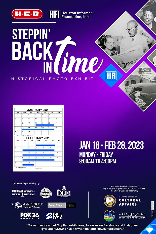 The City of Houston Mayor’s Office of Cultural Affairs (MOCA) will open its 2023 exhibition series Expressions! with the exhibit, “Steppin’ Back in Time: Houston in Retrospect.” Houston Informer Foundation, Inc. (HIFI), originated this photography exhibition and virtual reality experience celebrating Black-owned businesses and community leaders of color in Houston.