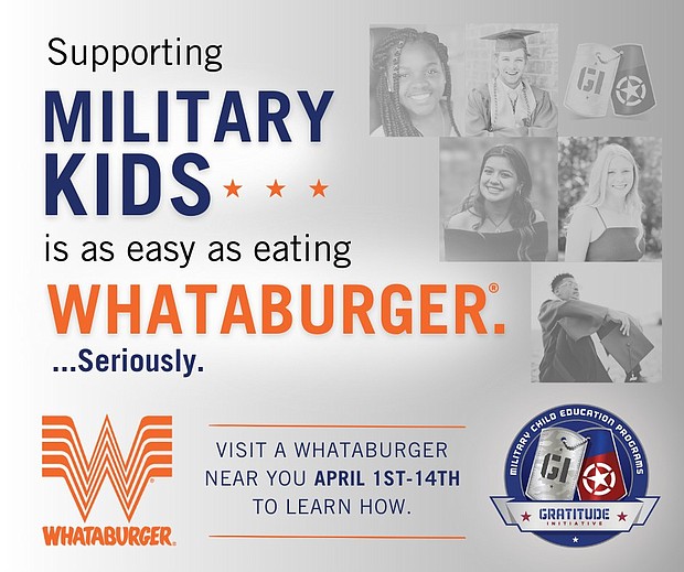 Whataburger, the beloved Texas-based chain, is teaming up with Gratitude Initiative, a non-profit organization dedicated to supporting children of military and veteran families, to mark the "Month of the Military Child" with a special fundraiser.