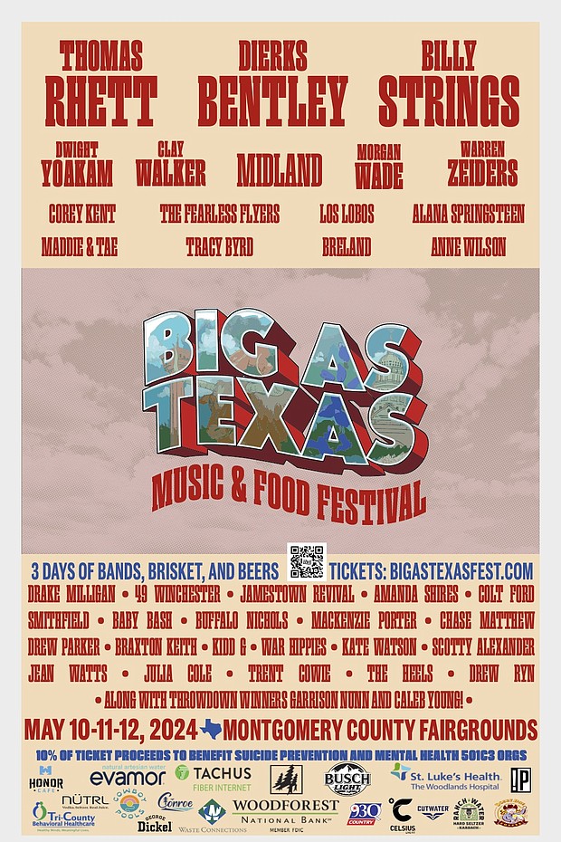 The inaugural Big As Texas Festival will feature a stellar music lineup and a diverse culinary experience from May 10-12 at the Montgomery County Fairgrounds.