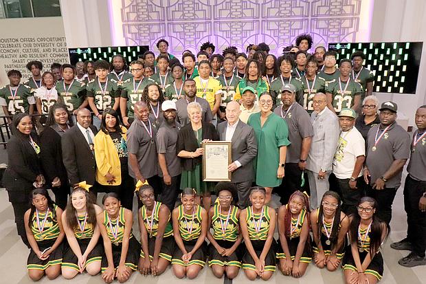 In a heartwarming ceremony at Houston’s City Hall Legacy Room today, Council Member Carolyn Evans Shabazz, alongside newly inaugurated Mayor John Whitmire, honored the tremendous achievements of the Evans E. Worthing High School football team. The event marked a historic proclamation of Thursday, November 19, 2024, as Worthing High School Day—a fitting tribute to the unstoppable Colts, who clinched the prestigious 4A-1 Region III District II Championship and continue their journey toward playoff glory.