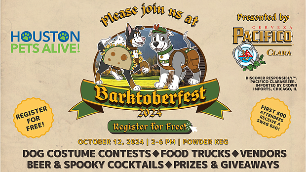 Barktoberfest 2024, a free dog-friendly event benefiting Houston Pets Alive!, will take place on October 12th at Powder Keg, featuring a dog costume contest, activities, and celebrity guests.