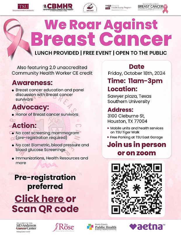 Texas Southern University will host its 3rd annual “We Roar Against Breast Cancer” event on October 18, offering health services, survivor panels, and educational sessions to promote breast cancer awareness and support.