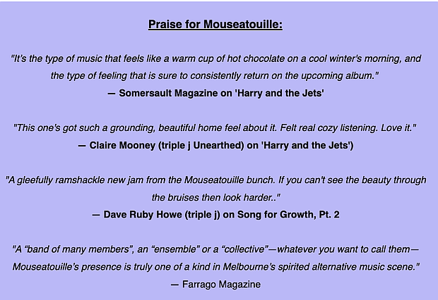 Naarm/Melbourne’s genre-bending nine-piece collective Mouseatouille are back with a fresh burst of energy, releasing their new single “Dogshow” ahead of their highly anticipated third album, DJ Set, arriving September 19 via Dot Dash Recordings / Remote Control. The announcement comes with big news: a headline DJ Set Tour across Australia and a coveted spot at the 33rd annual Meredith Music Festival, where they’ll join labelmates Perfume Genius and bar italia on one of the country’s most beloved stages.