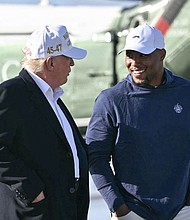 President Donald Trump walks with Philadelphia Eagles running back Saquon Barkley before boarding Air Force One on April 27. Barkley said on August 4 that … Published on August 5, 2025 |