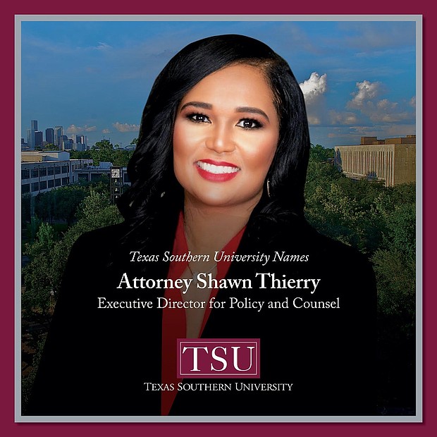 February 11, 2025 (Houston) — Texas Southern University (TSU) has announced the appointment of Attorney Shawn Thierry as its new Executive Director for Policy and Counsel. In this pivotal role, she will serve within the Office of Board Relations, working alongside the Executive Director for Board Relations to enhance institutional policies and governance.