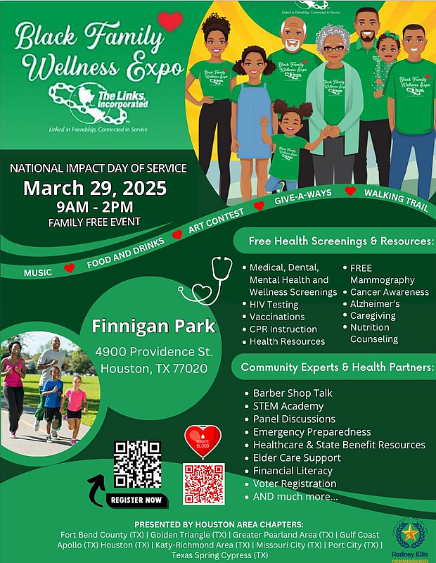Houston, get ready! On Saturday, March 29, 2025, Finnigan Park will transform into a vibrant hub of health, hope, and healing as the Houston Area Chapters of The Links, Incorporated present the 2025 Black Family Wellness Expo — and trust us, you won’t want to miss a moment of it.