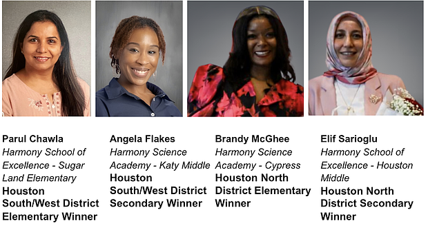Harmony Public Schools has named its 2024-2025 Teachers of the Year for the Houston districts, honoring four exceptional educators for their dedication to student success and innovative teaching.